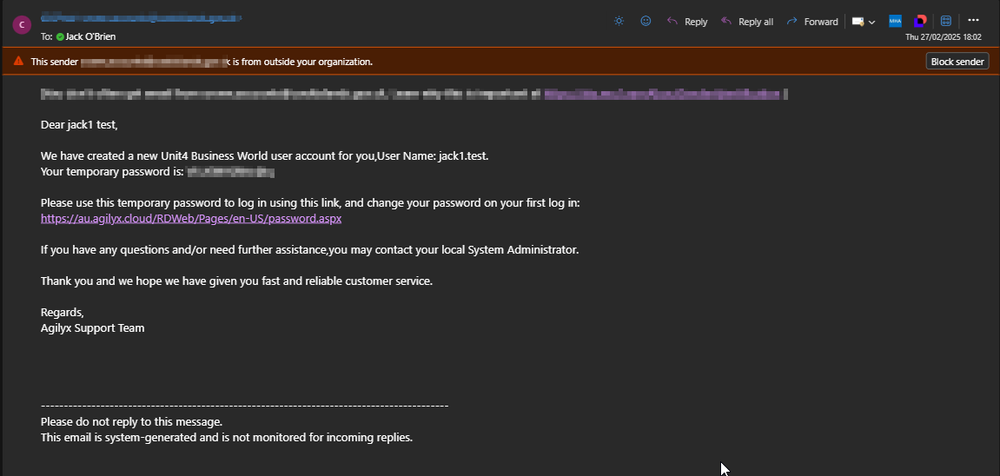 1You will receive your Agilyx Cloud credentials via emailWhen you are created an Agilyx Cloud account via AD Manager, you will receive an email of your